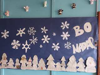 Mural Navideño Ardia 2021 do Equipo de Biblioteca coa participación do alumnado de 5º de Primaria